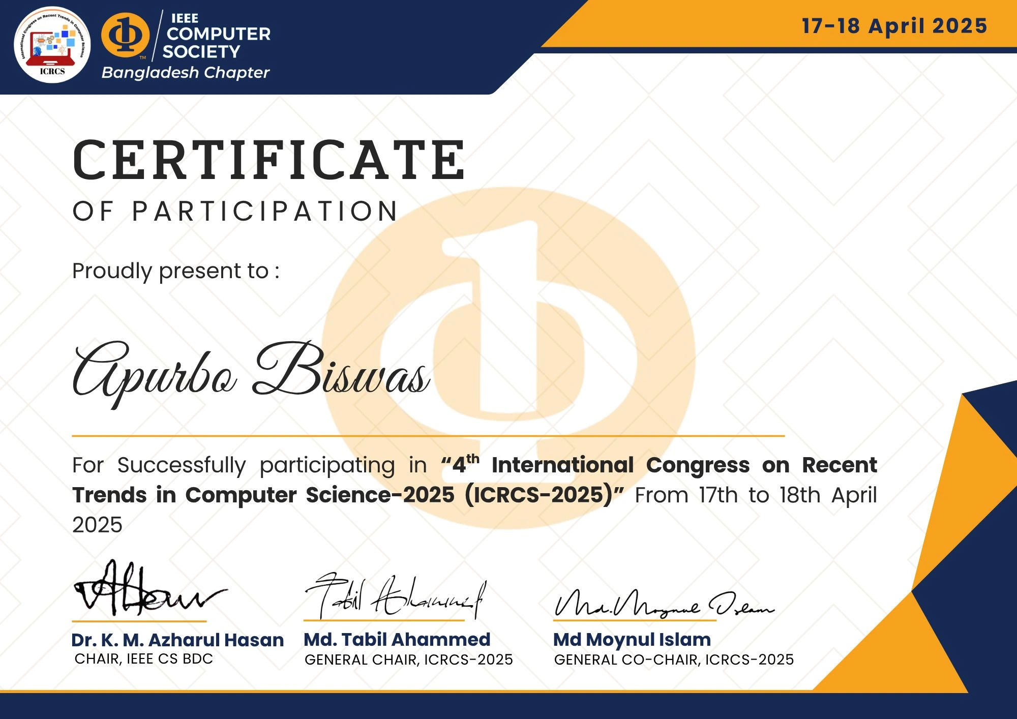 IEEE Recognition Certificate